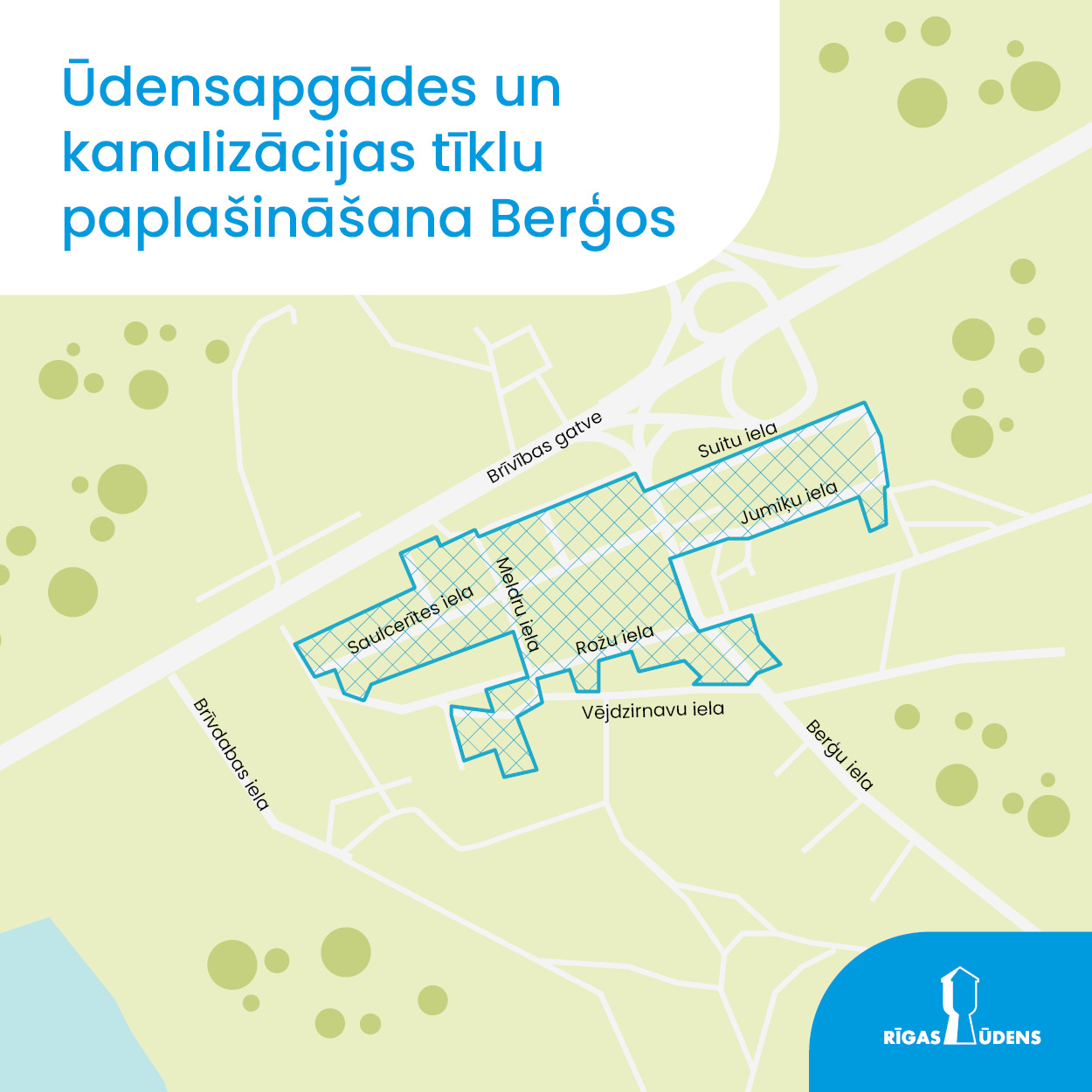 Pabeigta ūdensapgādes un kanalizācijas tīklu paplašināšana un izbūve Berģos - Jumiķu, Saulcerītes un Suitu ielu apkaimē. Iedzīvotāji jau var uzsākt pieslēgšanos jaunajiem pilsētas tīkliem.