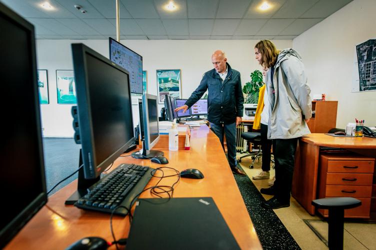 Bioloģiskās attīrīšanas stacijas “Daugavgrīva” vadītājs Māris Zviedris zinātkārajiem jauniešiem un viņu ceļabiedrei atrādīja notekūdeņu attīrīšanas iekārtas un to vadības sistēmu. Brīžiem Helēnai un Robertam izbrīnā iepletās acis, brīžiem nācās aizspiest degunus - tāda nu ir "Daugavgrīvas" ikdienas darba specifika.