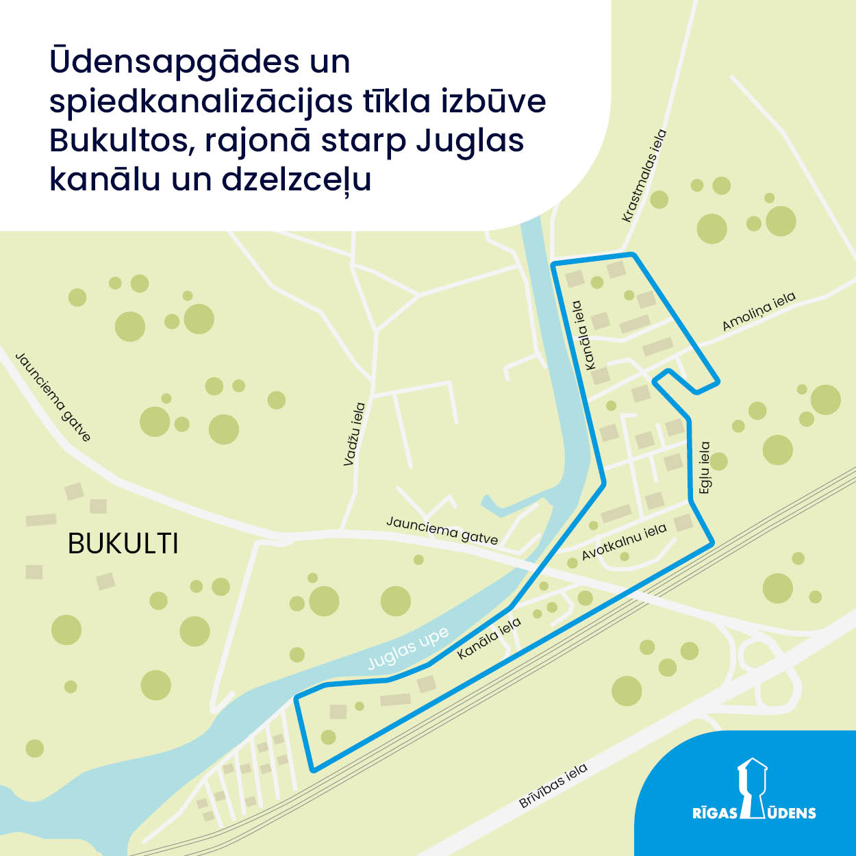 Bukultu privātmāju rajonam starp Juglas kanālu un dzelzceļu plānots pārbūvēt esošos ūdensvada pieslēgumus pilsētas tīkliem, kā arī izveidot jaunus kanalizācijas pieslēgumus īpašumiem. Tas ļaus pilsētas tīkliem pievienoties vairāk nekā simts mājsaimniecībām.