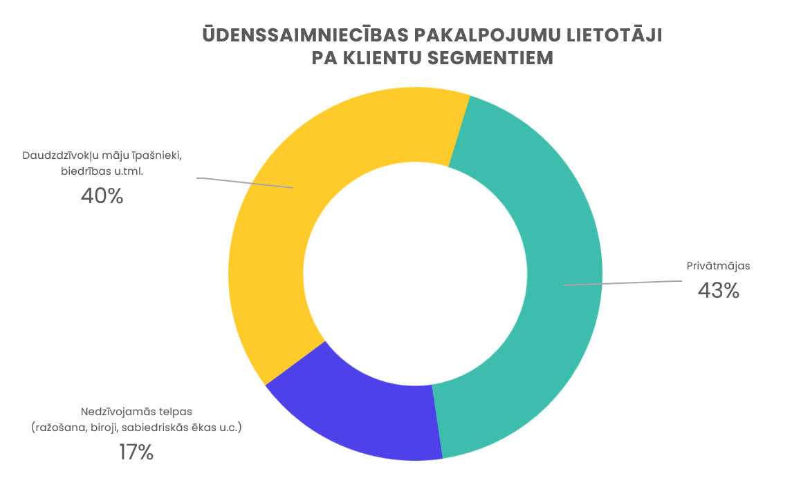 SIA “Rīgas ūdens” klienti ir ūdenssaimniecības pakalpojumu lietotāji un potenciālie pakalpojumu lietotāji – nekustamo īpašumu īpašnieki, kas veic nepieciešamās darbības, lai ierīkotu pieslēgumu pie centralizētās ūdensapgādes vai kanalizācijas sistēmas un noslēgtu pakalpojumu līgumu. SIA “Rīgas ūdens” pakalpojumus sniedz arī pakalpojumu lietotājiem, kas rada virsnormas piesārņojumu un ar būvniecību procesu saistītām personām.