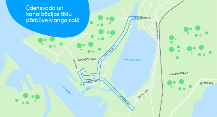 Šovasar tiks uzsākta ūdensvada un kanalizācijas tīklu pārbūve Mangaļsalā, orientējošais darbu pabeigšanas termiņš – 2028. gada rudens. Tas šajā apkaimē novērsīs kritisko situāciju vides jomā, kā arī nodrošinās Mangaļsalas iedzīvotājiem drošākus un kvalitatīvākus ūdenssaimniecības pakalpojumus.