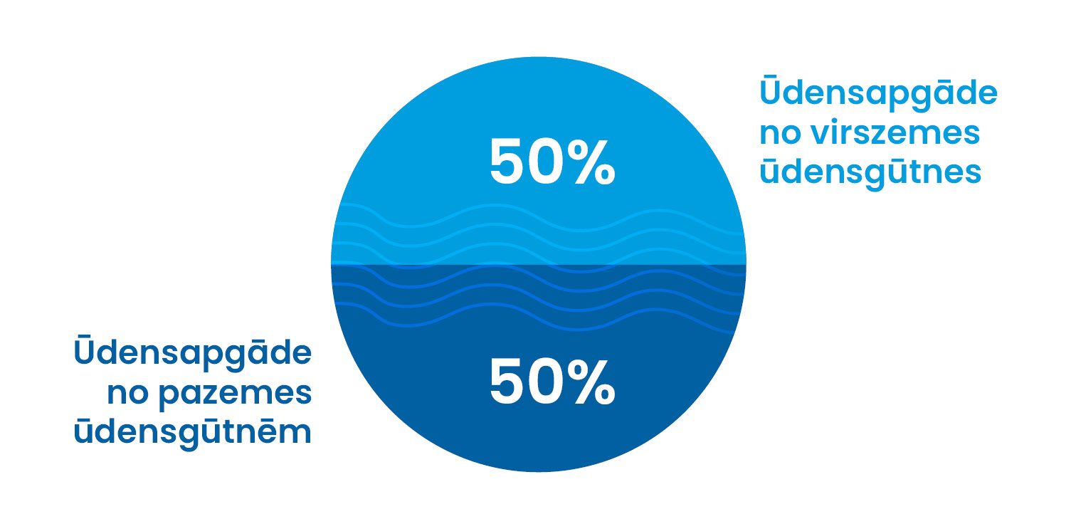 Iegūtā ūdens sadalījums no pazemes un no virszemes ūdensgūtnēm