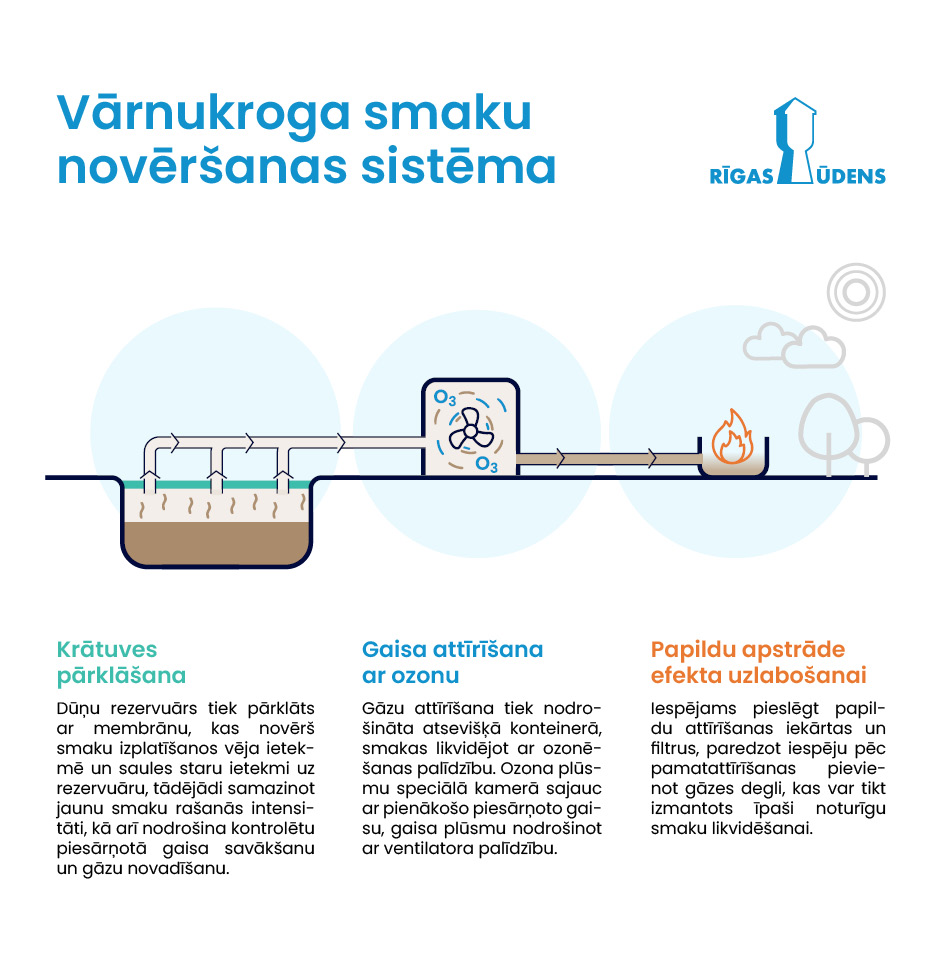 Noslēgusies dūņu lauka “Vārnukrogs 2104” gala krātuves pārklāšana ar necaurlaidīgu membrānu, novēršot smaku izplatību Vārnukrogā un tā tuvumā esošajās apkaimēs. Šis risinājums uzrāda ļoti labus rezultātus. SIA “Rīgas ūdens” turpinās monitorēt situāciju, lai, iestājoties siltākam laikam, pēc nepieciešamības veiktu papildu pasākumus smaku ierobežošanā.