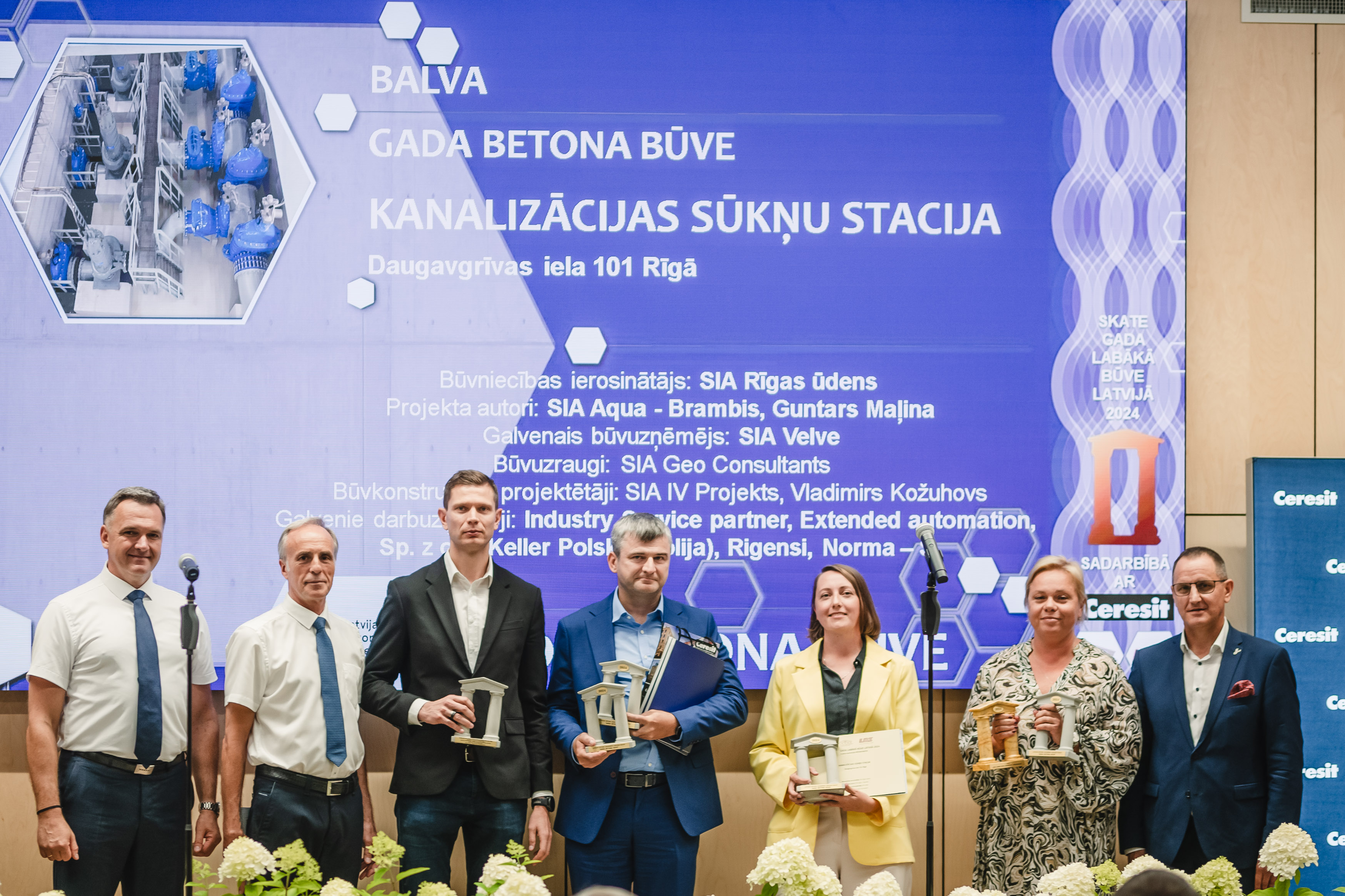 Skates "Gada labākā būve Latvijā 2024" 10. septembrī notikušajā svinīgajā apbalvošanas ceremonijā kanalizācijas sūkņu stacija Daugavgrīvas ielā 101 saņēmusi uzreiz divus augstus apbalvojumus - 1. vietu nominācijā “Inženierbūve” un īpašo balvu “Gada betona būve”.