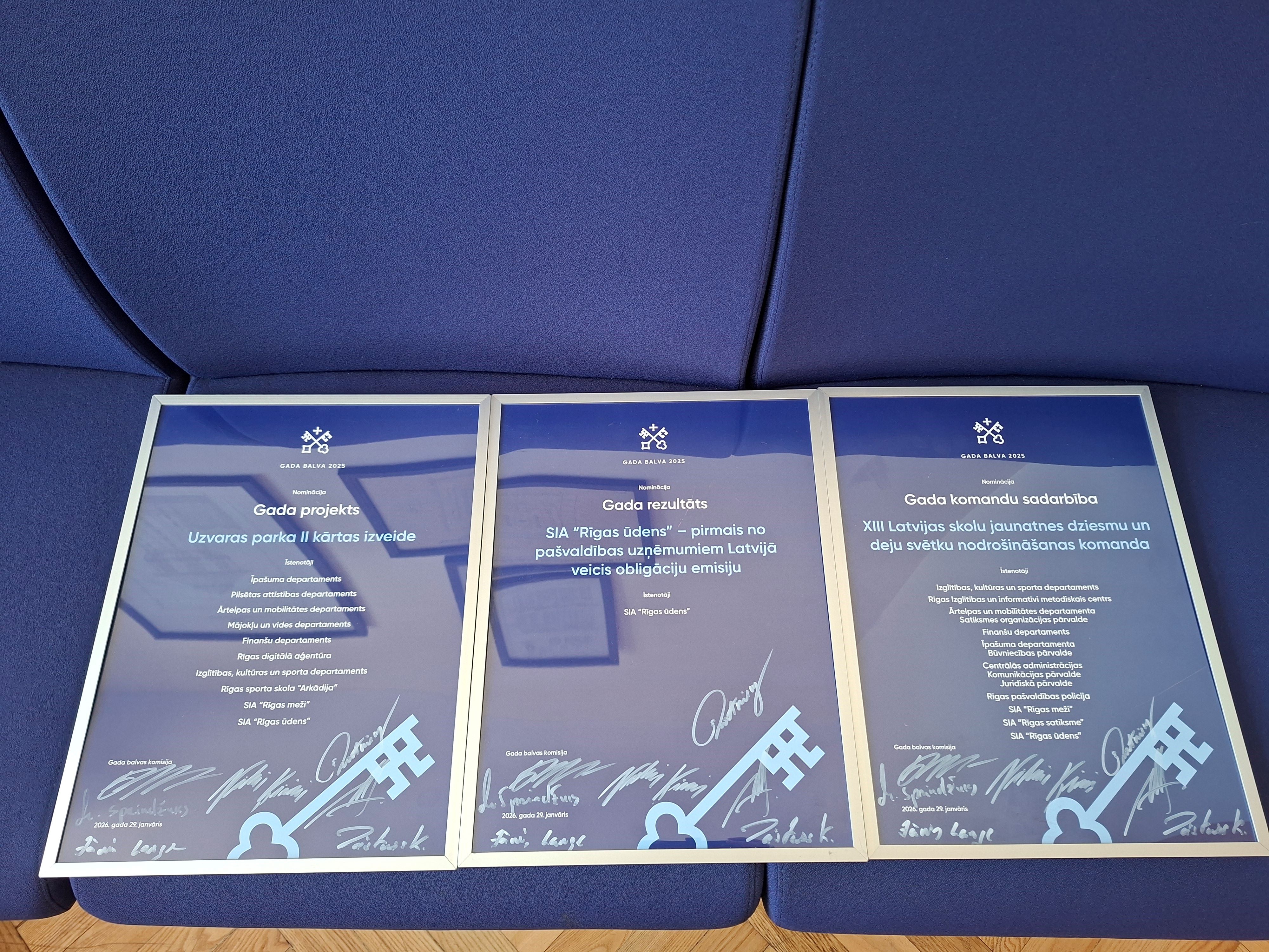 Pie Rīgas domes pirms vairākiem gadiem iedibinātās “Gada balvas” pirmoreiz ticis SIA “Rīgas ūdens” – uzņēmums uzvarējis nominācijā “Gada rezultāts”, tādējādi saņemot atzinību kā pirmais no pašvaldības uzņēmumiem Latvijā, kas veicis obligāciju emisiju.