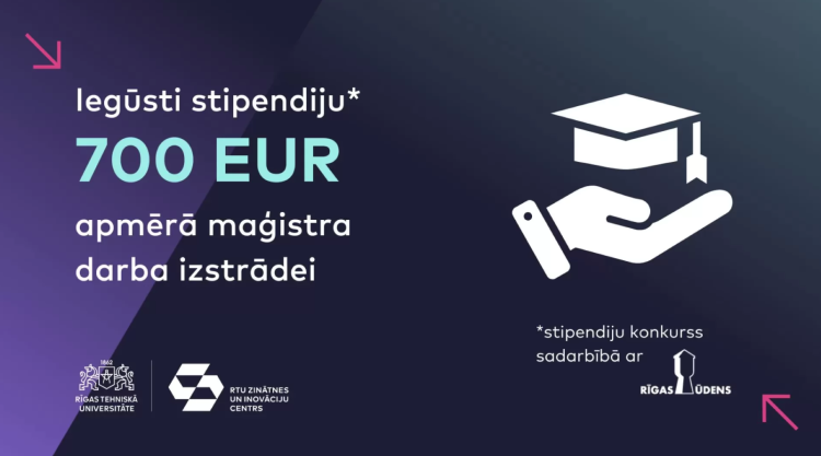 Sadarbībā ar Rīgas Tehnisko universitāti (RTU) izsludināts stipendiju konkurss maģistra līmeņa studentiem, kuri vēlas izstrādāt maģistra darbu kādā no “Rīgas ūdens” piedāvātajiem tematiem. Pieteikties var līdz 14. februārim.