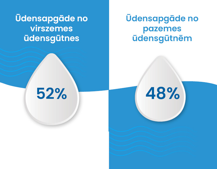 Iegūtā ūdens sadalījums no pazemes un no virszemes ūdensgūtnēm
